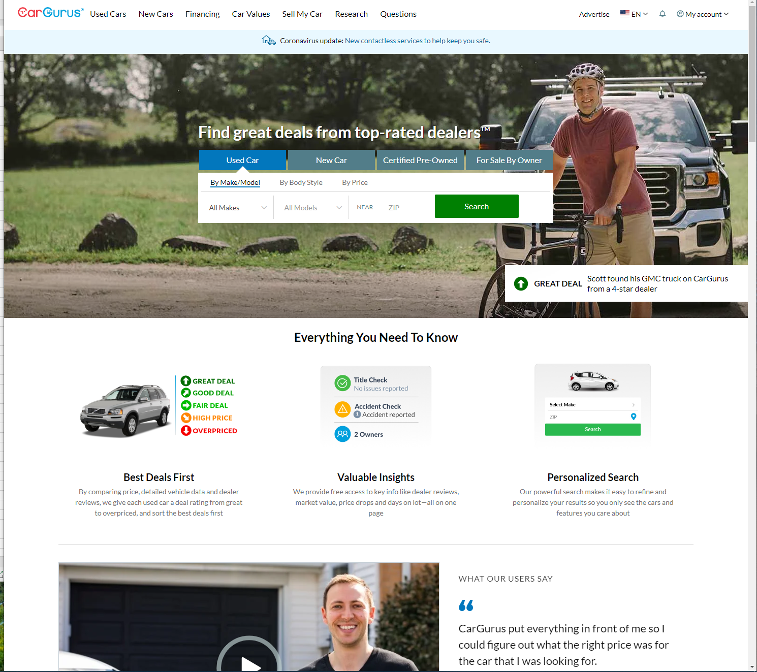 "CarGurus is a Cambridge, Massachusetts-based auto study as well as buying website that assists users in comparing regional listings for used and also brand-new automobiles, and also speaking to se...